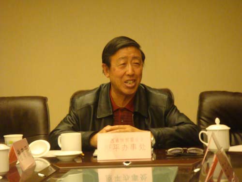 市委副秘书长张立柱同志向客人介绍原平基本情况和贫困群体