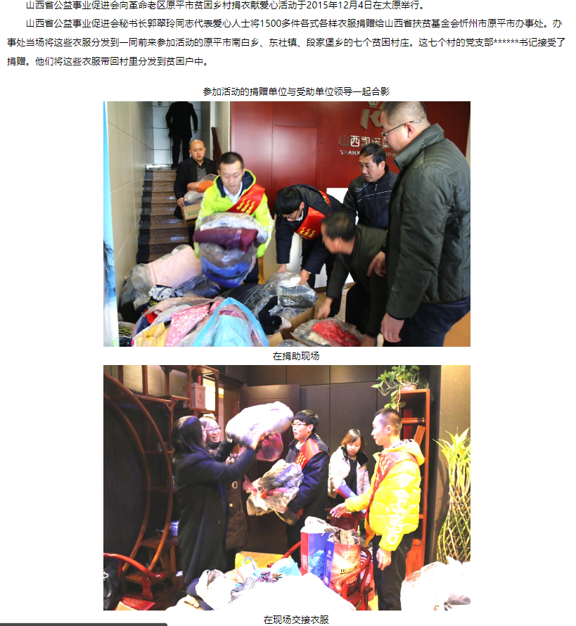 山西省公益事业促进会向革命老区原平市贫困乡村捐衣献爱心活动