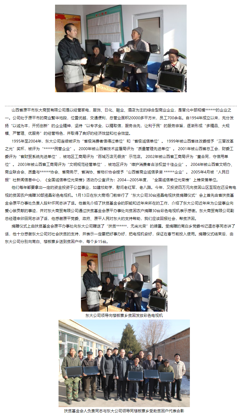 山西省原平市东大商贸有限公司向楼板寨乡等贫困户捐赠液晶电视机