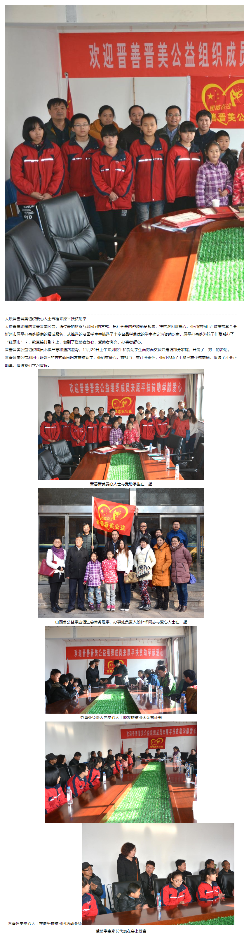 太原晋善晋美组织爱心人士专程来原平扶贫助学