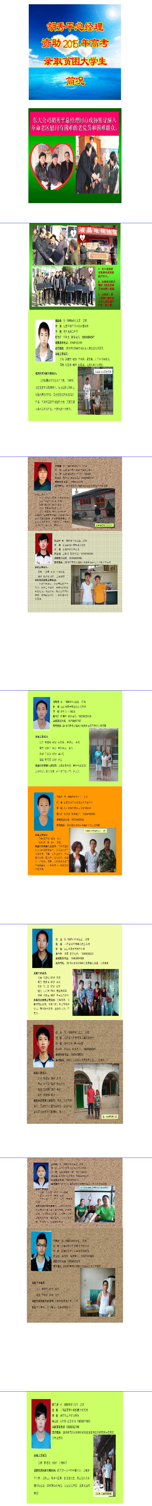 爱心企业家胡秀平资助2015年贫困大学生简况